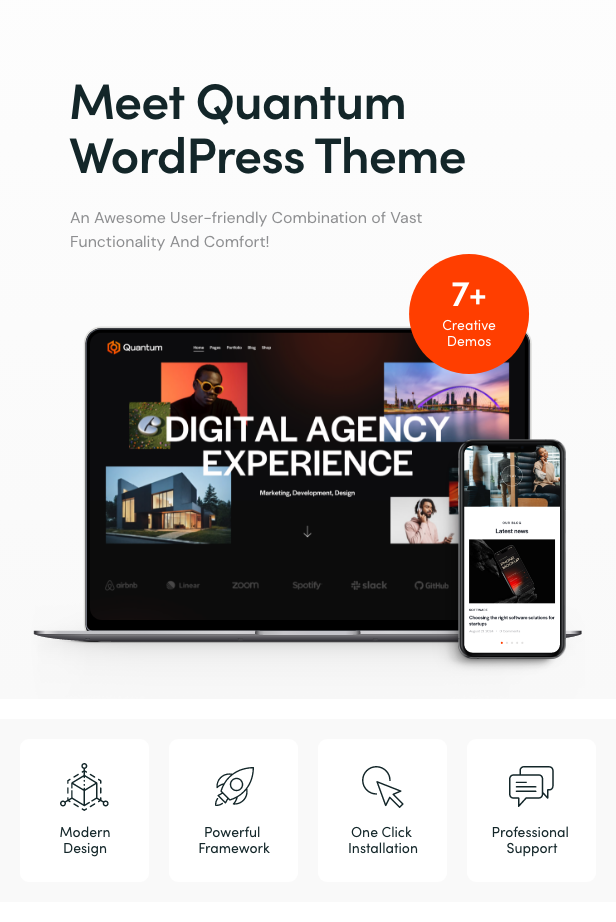 Quantum is a modern, colorful & responsive Web Studio and Creative Agency WordPress theme. It is perfect for all kinds of digital online agencies, and offline firms.
