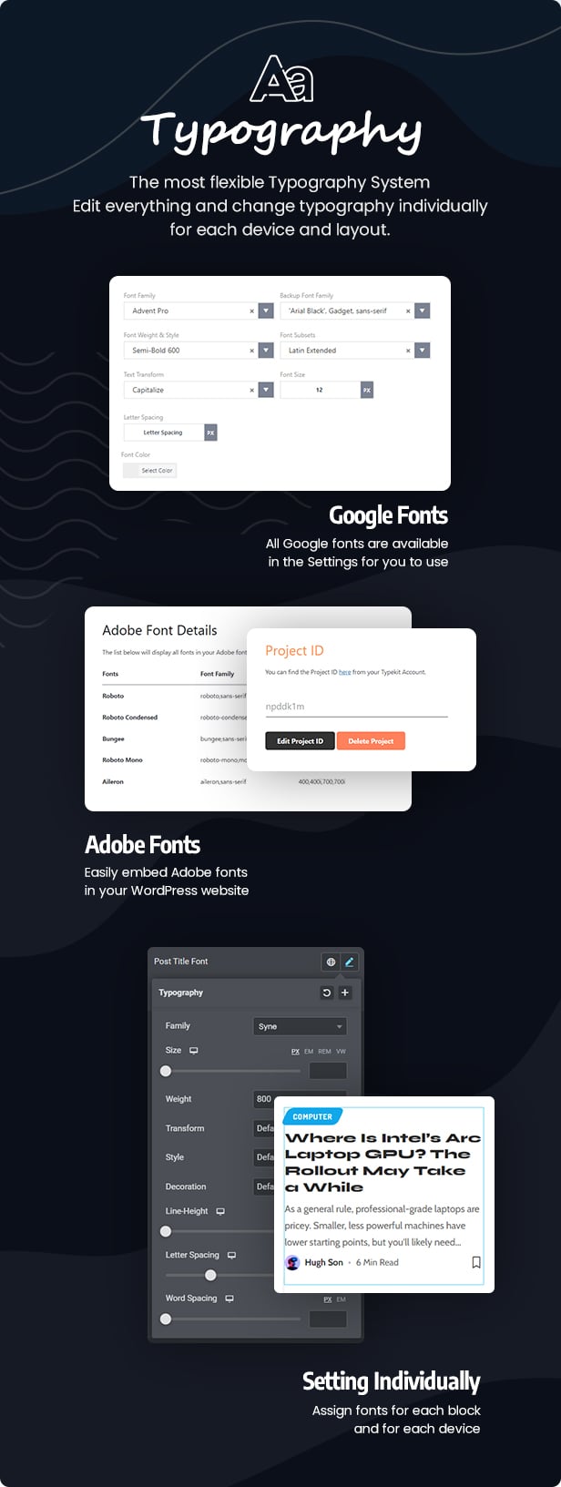 Advanced Typography, Upload Your Own Fonts, Google Fonts Supported