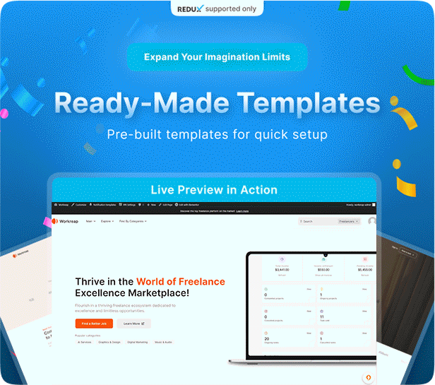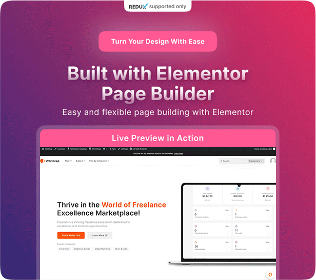 1. Added new Redux version with 20+ demos 2. Moved Unyson version templates to the workreap_core plugin 3. Added Elementor shortcodes with dynamic styles 4. Added a template library with 50+ ready-made templates 5. Introduced a new Mega Menu 6. Implemented a new installer for the Redux version 7. Added compatibility with WP Guppy Lite