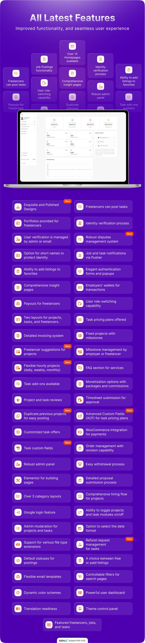 - Advanced Features: New enhancements include robust dispute management, freelancer recommendations, milestone management, and the ability to duplicate previous projects for rapid re-posting.