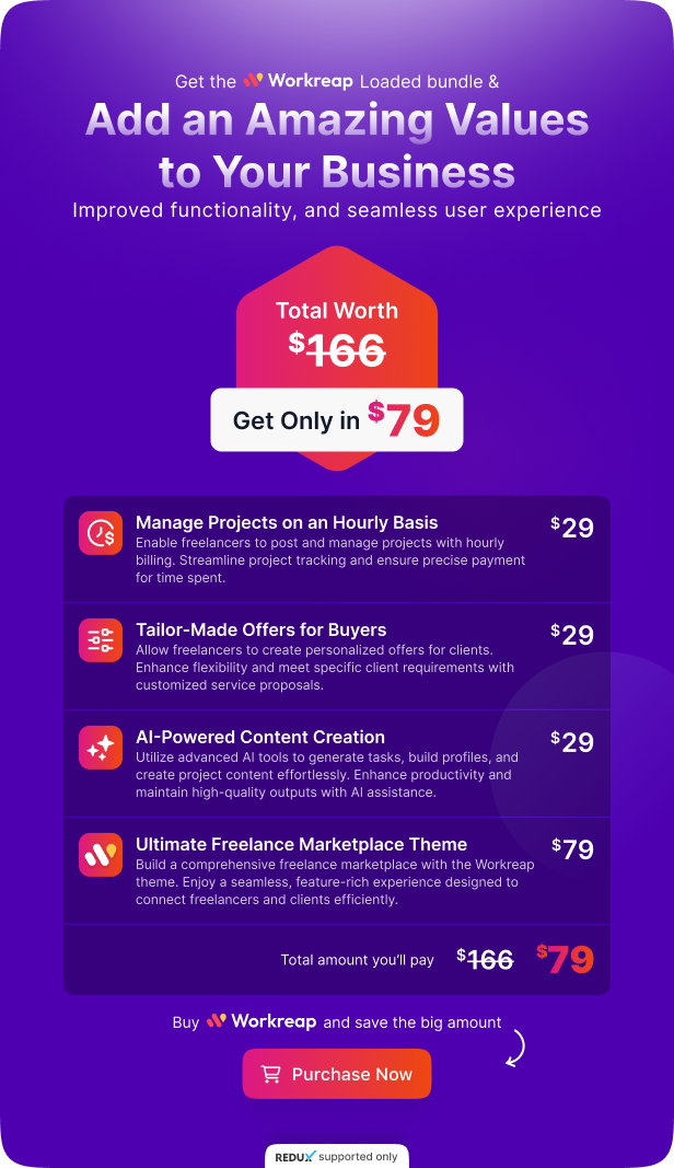 Workreap is not just a theme but a complete solution for building a successful freelance marketplace. With its extensive features and user-focused design, it empowers users to create, collaborate, and thrive in a competitive digital landscape. Whether you’re starting a new marketplace, Workreap provides all the tools you need to succeed.